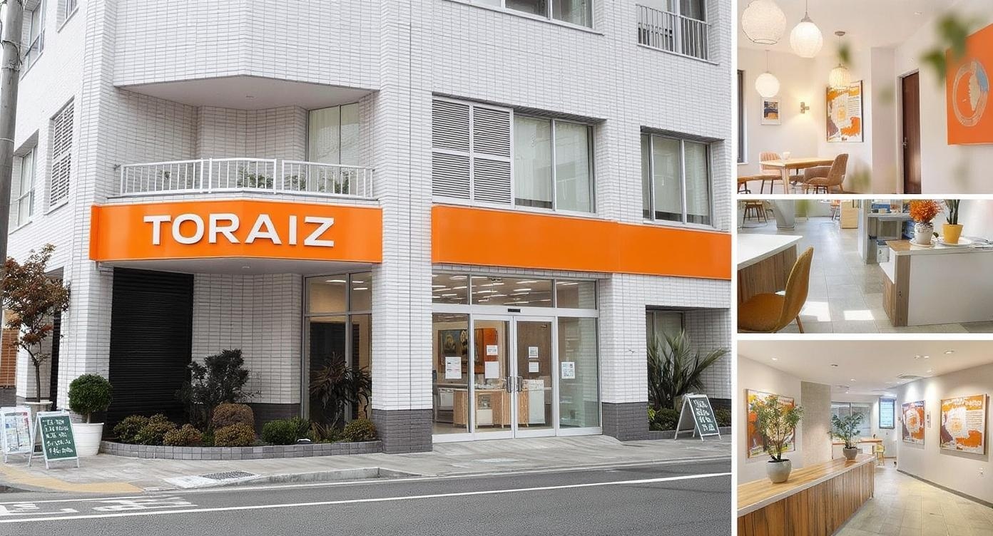 - 1階にファミリーマート、ドトールコーヒー等が入居しており、ビル内のフロアマップ6階にTORAIZの表記があります